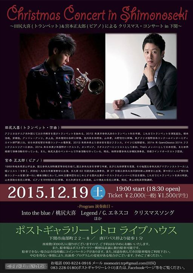 田尻大喜(トランペット)&宮本正太郎(ピアノ)によるクリスマスコンサートin下関